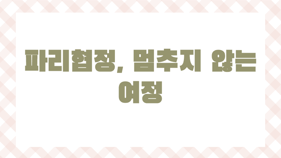 파리협정은 여전히 진행 중인 '살아있는' 협약이며, 끊임없는 노력과 점검을 통해 기후 위기를 극복해나가는 과정에 있습니다.