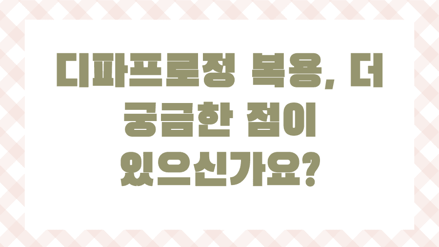 이 글에서는 디파프로정의 다양한 효능과 효과, 혹시 모를 부작용과 주의해야 할 점, 그리고 올바른 복용법과 가격 정보까지, 여러분이 궁금해하실 모든 것을 속 시원하게 알려드리고자 합니다. 더 이상 막연한 불안감이나 잘못된 정보로 약 복용을 망설이지 마세요. 여러분의 건강한 삶을 위한 디파프로정 가이드, 지금부터 시작합니다.